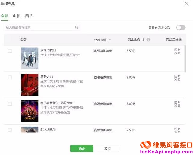 点击进入后,可以看到由猫眼电影演出提供的电影票,运营者随意选择插入文中: